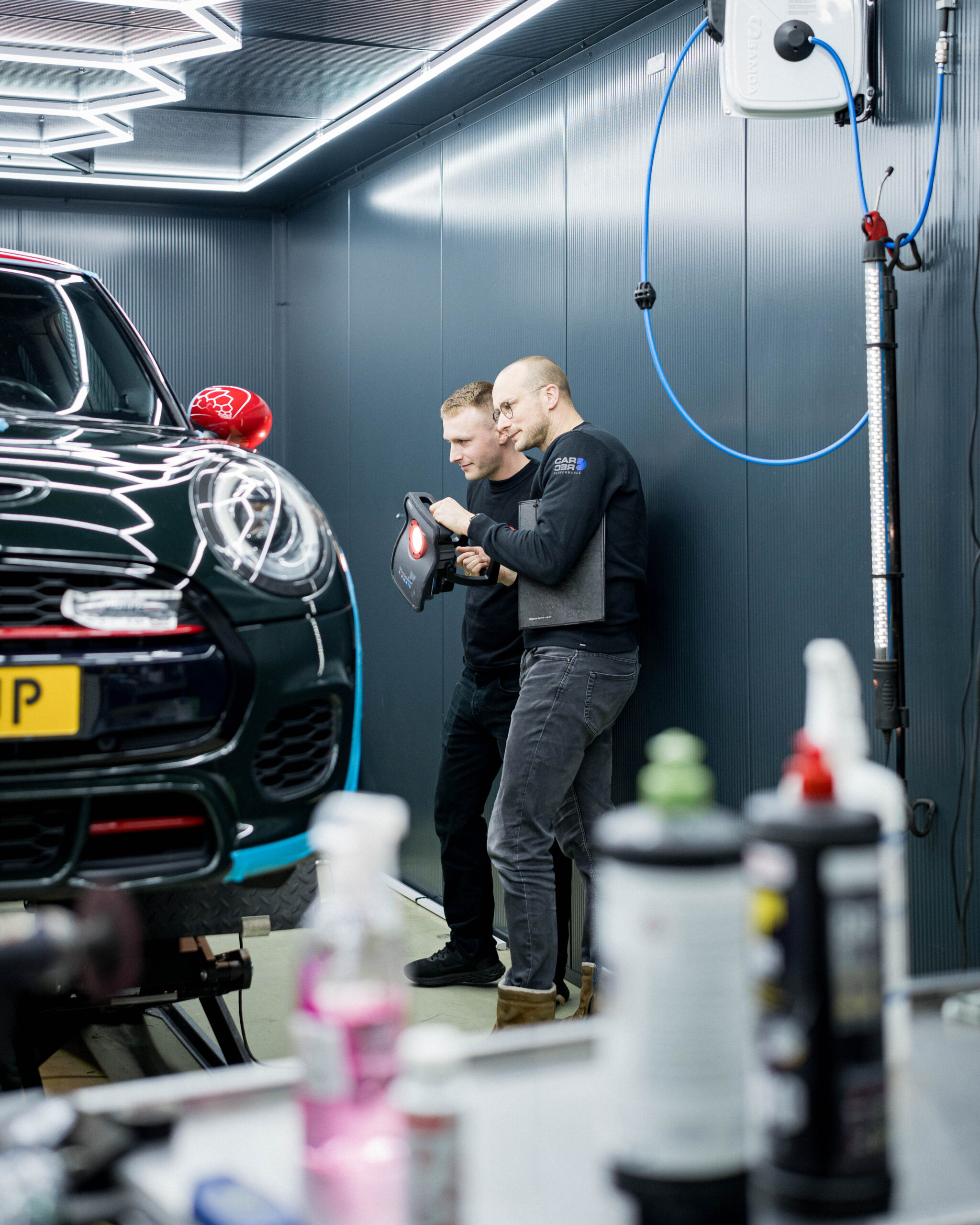 • Verlichting: Cruciaal om zelfs de kleinste swirls (krassen) in de lak zichtbaar te maken en te verwijderen.